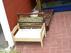 Im Esszimmer schließlich darf eine Heuraufe nicht fehlen, diese sollte stets gut gefüllt sein.