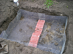 Es lohnt sich auf jeden Fall den Boden zumindest in einem Teil des Geheges bis auf eine Tiefe von 0,5 bis 1m auszukoffern, die Bodensicherung (z.B Draht) in dieser Tiefe anzubringen und mit Erde aufzufüllen. Dabei ist darauf zu achten, dass die Drahtbahnen wirklich lückenlos mit den Seitenteilen abschließen. Die Drahtbahnen sollte man auf gar keinen Fall mit Kabelbindern, sondern mit Metalldraht verbinden. Kabelbinder werden sofort von Kaninchen zerbissen (Erfahrung macht klug) und die Kaninchen schaffen es sogar die Drahtbahnen auseinanderzuschieben, um sich dann den Weg in die Freiheit zu buddeln.